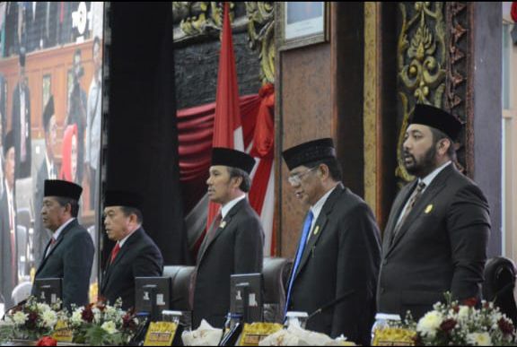 JAMBIUPDATE.CO, JAMBI - Ketua DPRD Provinsi Jambi, Edi Purwanto memimpin rapat paripurna DPRD Provinsi Jambi dalam rangka mengikuti pidato kenegaraan presiden republik indonesia dalam rangka HUT ke 78 Kemerdekaan Republik Indonesia, Rabu (16/8).