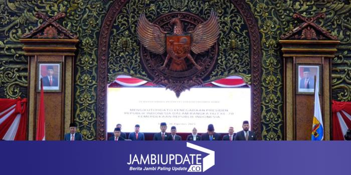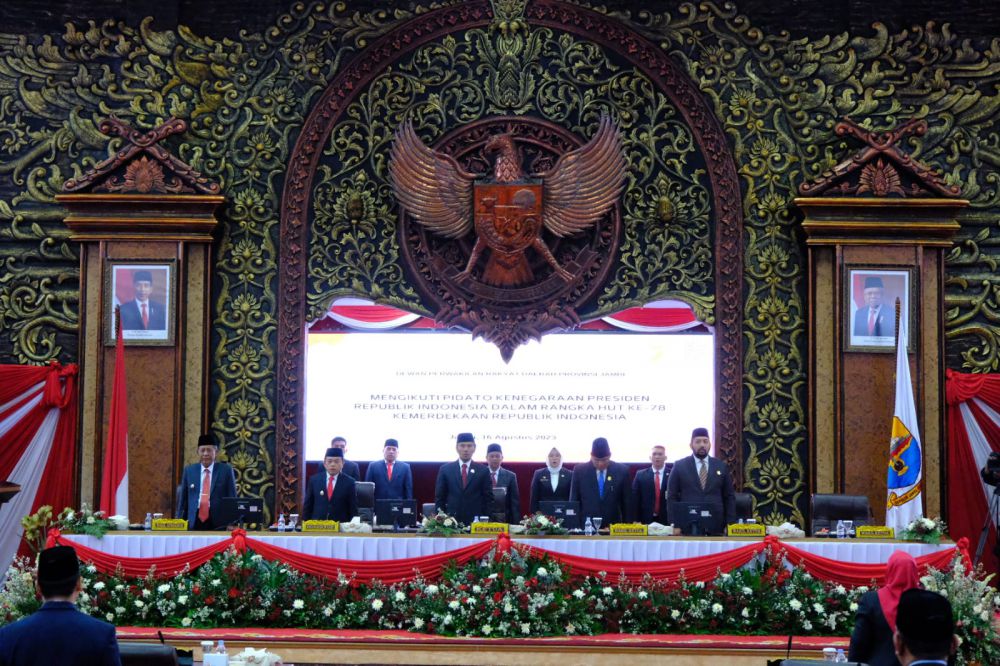JAMBIUPDATE.CO, JAMBI- Pemerintah Provinsi Jambi mengikuti Pidato Kenegaraan Presiden Republik Indonesia dalam Rangka HUT Ke-78 Kemerdekaan Republik Indonesia, acara berlangsung secara daring bertempat di Gedung DPRD Provinsi Jambi, Rabu (16/08/2023).