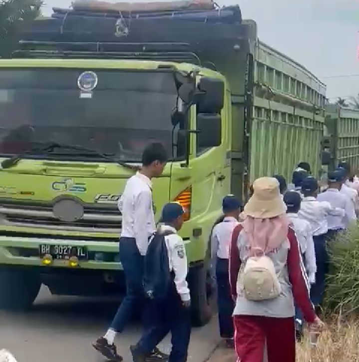 Macet panjang akibat truk batu bara di Jalan Ampelu hingga ke Tembesi ini bahkan sampai mengganggu pawai para siswa menyambut HUT ke-78 RI.