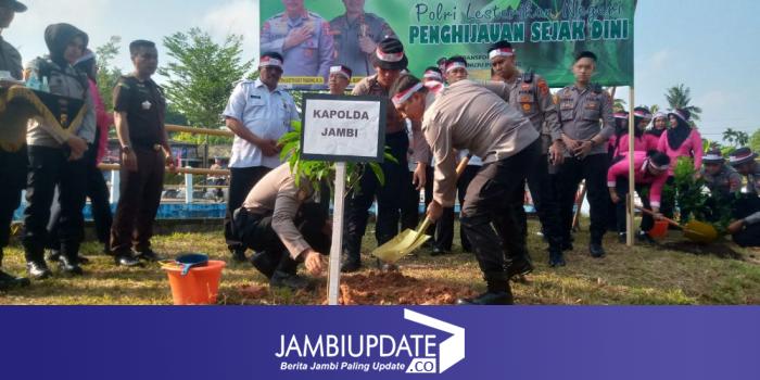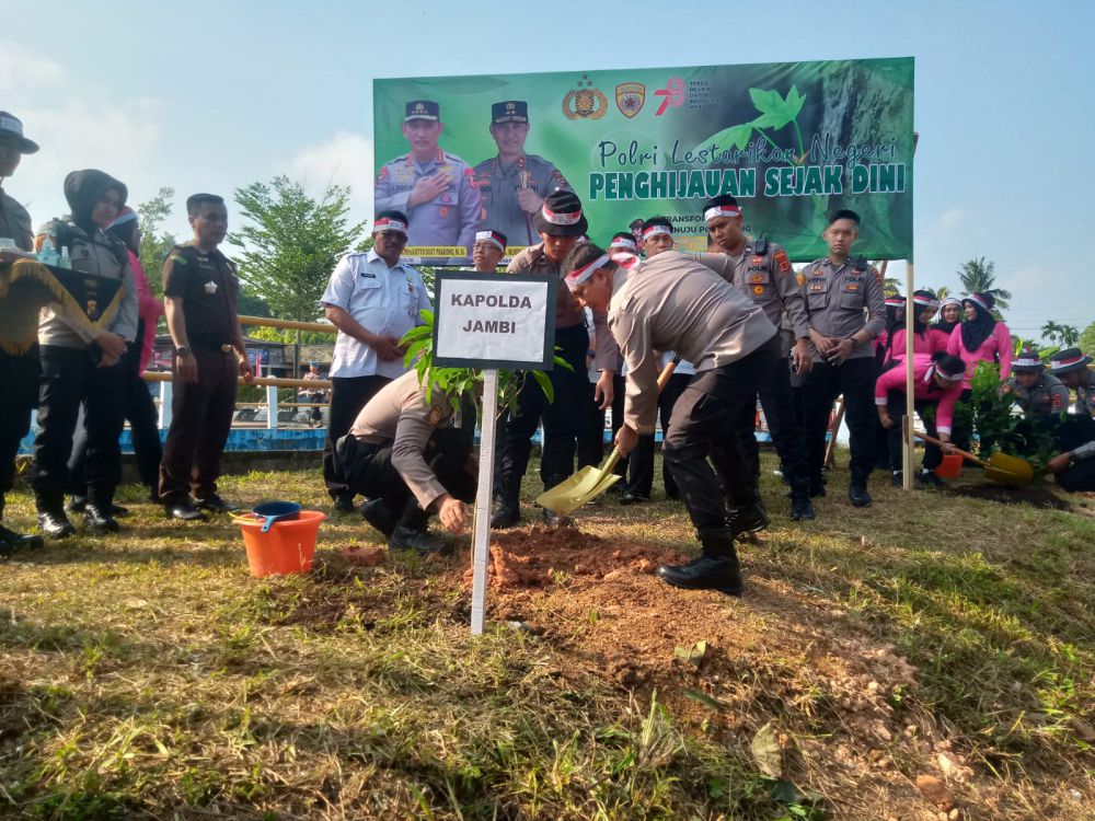 JAMBIUPDATE.CO, JAMBI- Kapolda Jambi Irjen Pol Rusdi Hartono pimpin kegiatan acara penanaman pohon secara serentak serta mengikuti penanaman pohon serentak seluruh Indonesia oleh Kapolri via zoom meeting pada Rabu, (23/8) pagi.