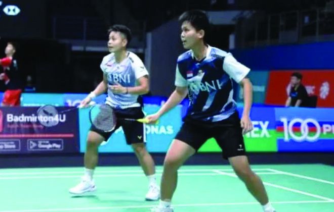 Pada laga di Royal Arena, Copenhagen, Minggu (27/8/2023), Apri/Fadia menyerah 16-21, 12-21 dalam pertandingan berdurasi 42 menit.