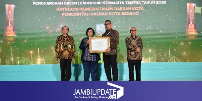 JAMBIUPDATE.CO, JAKARTA - Kota Jambi terus konsisten mendulang prestasi. Dibawah duet kepemimpinan Fasha-Maulana, keduanya terbukti mampu menjaga ritme raihan prestasi membanggakan untuk Kota Jambi. Fasha kembali membawa Kota Jambi meraih prestasi membanggakan ditingkat nasional, yaitu penghargaan Green Leadership "Nirwasita Tantra" Tahun 2022 untuk Kategori Pemerintah Daerah Kota Sedang. Penghargaan tersebut diserahkan langsung oleh Menteri Lingkungan Hidup dan Kehutanan Republik Indonesia, Prof. Dr. Ir. Siti Nurbaya Bakar M.Sc kepada Wali Kota Jambi H. Syarif Fasha, bertempat di Gedung Manggala Wanabakti Kementerian Lingkungan Hidup dan Kehutanan, Jakarta (29/8/2023)