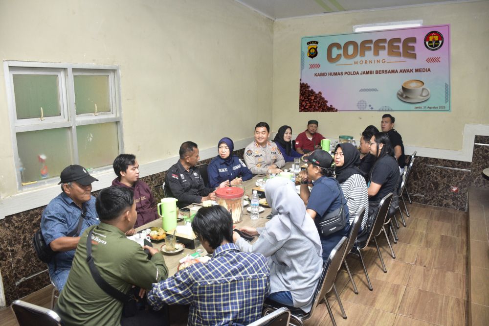JAMBIUPDATE.CO, JAMBI- Kabid Humas Polda Jambi Kombes Pol Mulia Prianto laksanakan coffee morning bersama awak media pada Kamis, (31/8).