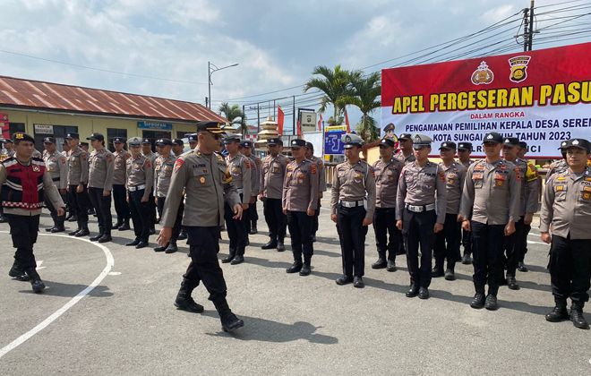 JAMBIUPDATE.CO, KERINCI– Pilkades serentak akan diselenggarakan pada hari Sabtu tanggal 9 September 2023. Demi menjaga Keamanan dan Ketertiban selama pelaksanaan Pemilihan Kepala Desa (Pilkades) Serentak Kota Sungai Penuh Polres Kerinci menerjunkan 146 Personil yang dilaksanakan pada 19 TPS di 19 desa dan 7 kecamatan se-Kota Sungai Penuh.