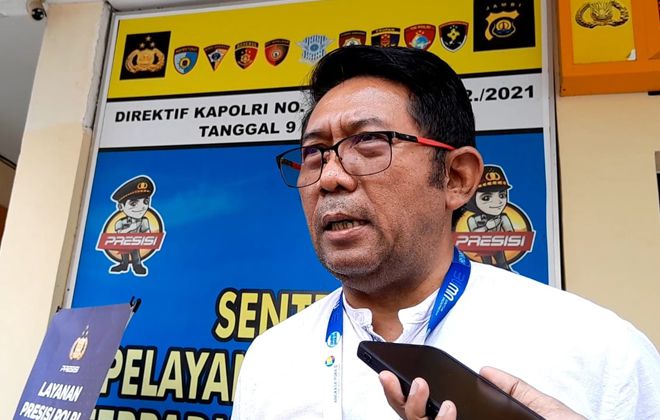 Siswanto tampak masuk ke Gedung Pos Pelayanan, Sentra Pelayanan Publik Terpadu Satu Atap Polda Jambi.