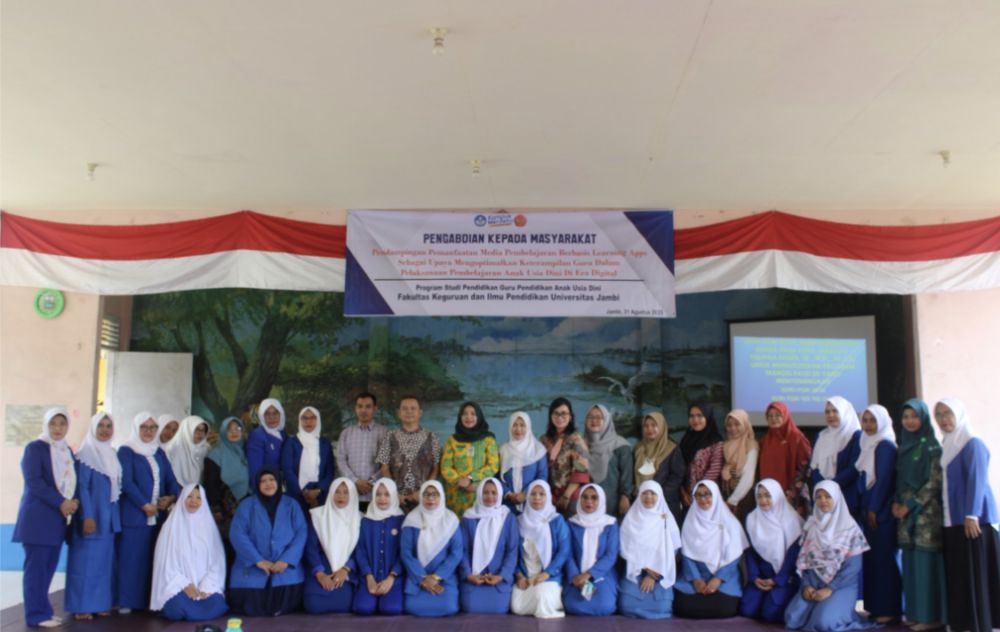 Kegiatan ini ditujukan untuk Guru-guru PAUD yang tergabung dalam Ikatan Guru Taman Kanak-kanak Indonesia (IGTKI) Kota Jambi dengan melakukan pendampingan pemanfaatan media pembelajaran berbasis Learning Apps sebagai upaya mengoptimalkan keterampilan guru dalam pelaksanaan pembelajaran anak usia dini di era digital.