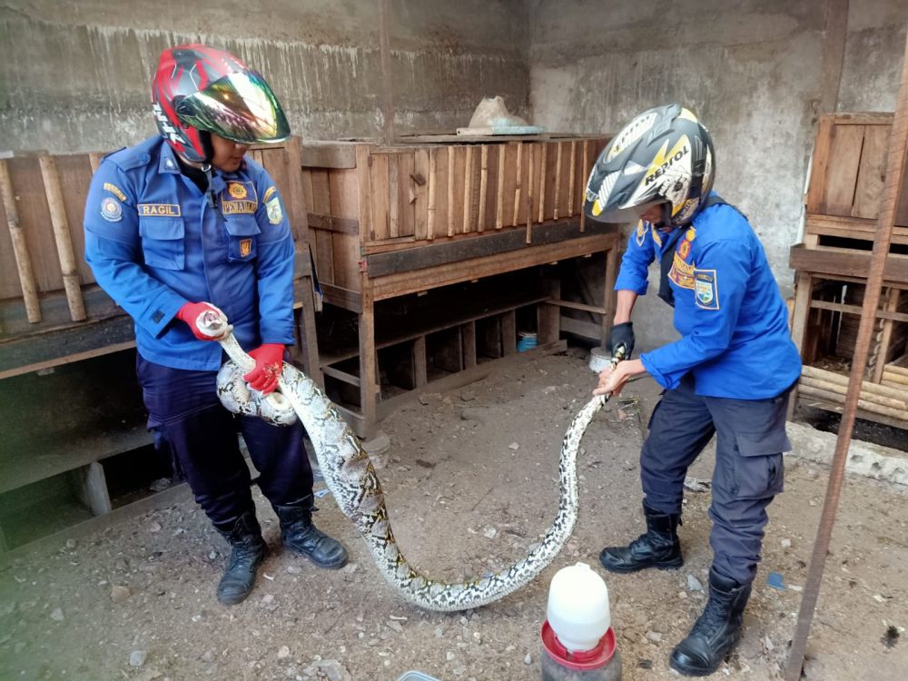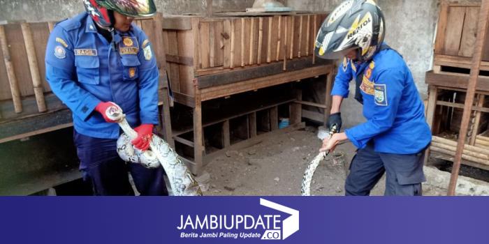 JAMBIUPDATE.CO, JAMBI - Seekor ular sanca yang masuk ke pemukiman warga, dievakuasi petugas Pemadam Kebakaran dan Penyelamatan (Damkartan) Kota Jambi, Rabu (20/9).