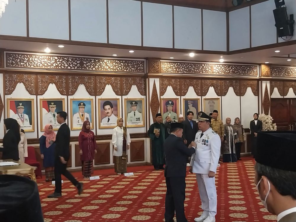 Gubernur Haris memimpin langsung pelantikan ini. Haris memandu Mukti mengucapkan sumpah janji sebagai Pj Bupati.