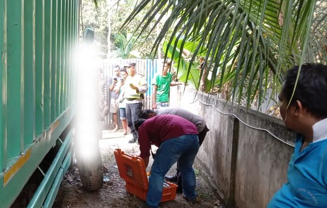 Saat ditemukan, korban dalam keadaan posisi tergantung di samping mobil truk miliknya dengan seutas tali nilon warna putih yang terikat di leher korban dan besi tangga mobil truk.