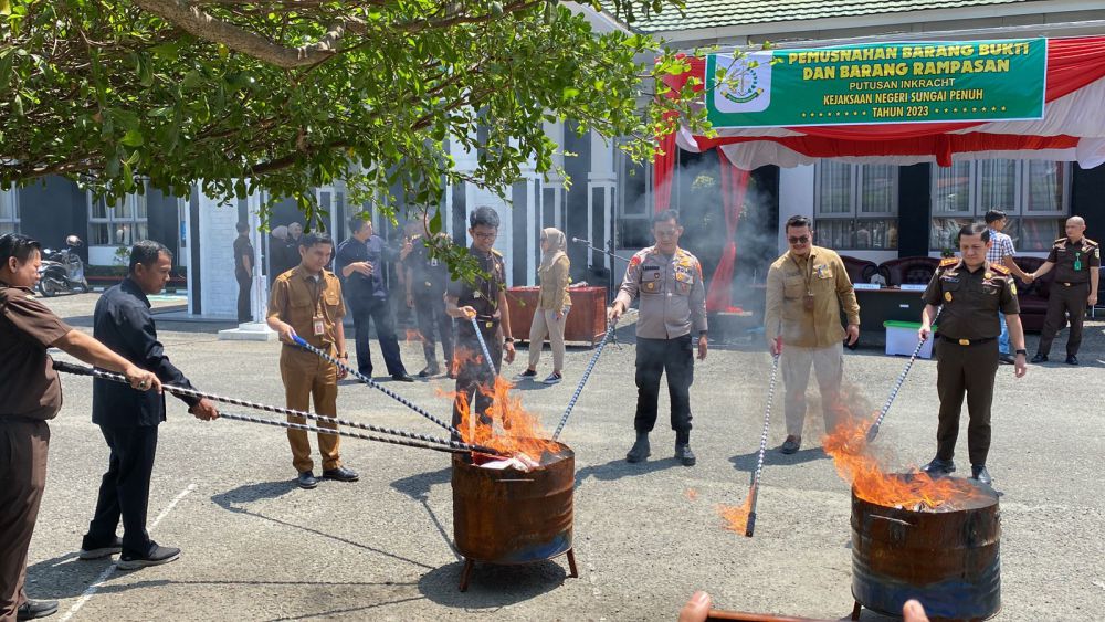 JAMBIUPDATE.CO, SUNGAI PENUH- Kejaksaan Negeri Sungai Penuh, melakukan kegiatan Pemusnahan Barang Bukti tindak pidana yang sudah berkekuatan hukum inkrah, bertempat di halaman Kejaksaan Negeri (Kejari)Sungai Penuh, pada Selasa (26/09/2023).