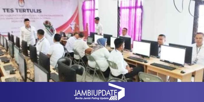JAMBIUPDATE.CO, JAMBI- Tes tertulis calon anggota Komisi Pemilihan Umum (KPU) 4 Kabupaten/kota dalam Provinsi Jambi digelar di Universitas Nurdin Hamzah, Senin (25/9) kemarin. Pelaksanaan tes dilakukan dengan 2 sesi, pertama untuk Kabupaten Kerinci dan Merangin, kedua untuk Kota Jambi dan Kota Sungai Penuh.