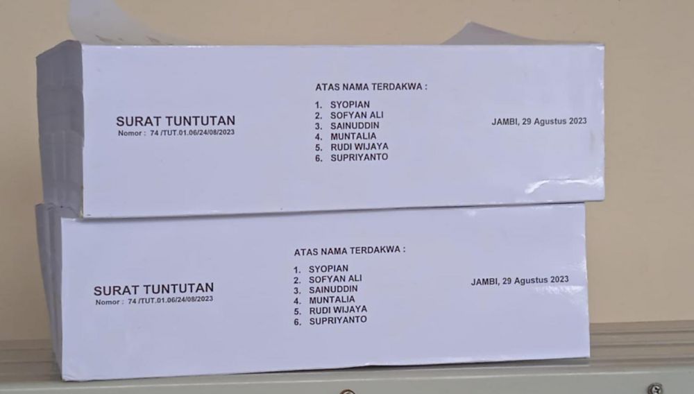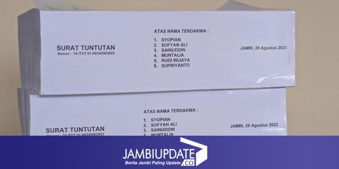 Keenam terdakwa tersebut yakni Sofyan Ali, Sainuddin, Muntalia, Rudi Wijaya, Supriyanto dan Sopian. Diketahui, terdakwa Sofyan Ali merupakan Anggota DPR RI Dapil Jambi dari Fraksi PKB.