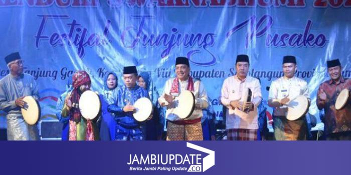 JAMBIUPDATE.CO, SAROLANGUN– Pemerintah Kabupaten Sarolangun menggelar puncak kegiatan Kenduri Swarnabhumi Festival Junjung Pusako dalam rangka mengembangkan dan melestarikan adat istiadat dan budaya daerah, di Lapangan Desa Tanjung Gagak, Kecamatan Bathin VIII.