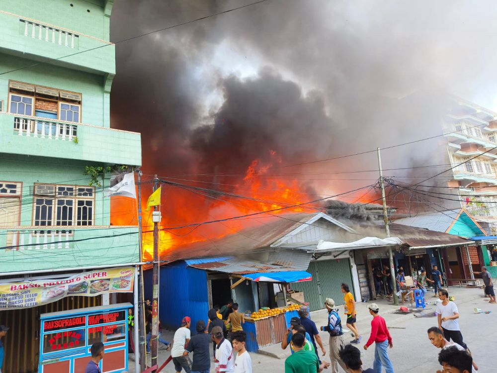 Api tersebut diketahui sudah membakar ruko kemudian warung kopi yang berada di Simpang Empat pahlawan. (Sun)