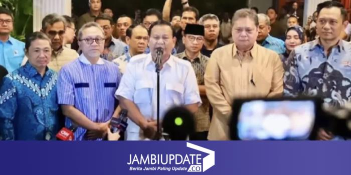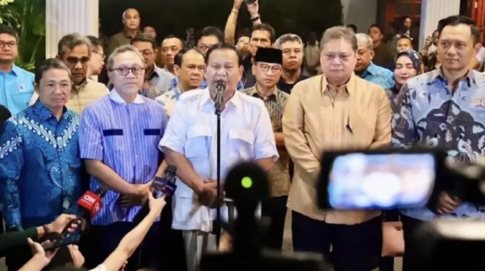 Diketahui, Prabowo Subianto akhirnya mengumumkan pendampingnya. Saat mengumumkan wakilnya itu, dia didampingi Ketua Umum Golkar, Airlangga Hartarto, Ketua Umum Demokrat Agus Harimurti Yudhoyono, Ketua Umum PAN Zulkifli Hasan, Ketua Umum Gelora Anis Matta, dan sejumlah petingga partai koalisi.