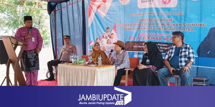 JAMBIUPDATE.CO, BUNGO- BKKBN Provinsi Jambi bersama Anggota DPR RI Komisi IX, Zulfikar Ahmad mengajak masyarakat untuk terus mencegah stunting. Hal itu disampaikan pada kegiatan Promosi dan Kie Program Penurunan Stunting yang berlangsung ada Kamis (12/10/2023) bertempat di Desa Rantau Pandan, Kecamatan Rantau Pandan, Kabupaten Bungo.