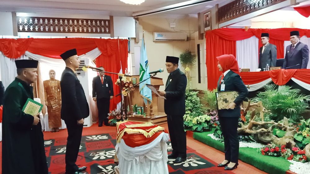 Pengambilan sumpah/janji Pergantian Antar Waktu (PAW) anggota DPRD Dean Herry Pramana bertempat di Aula Kantor DPRD Kota Sungai Penuh, Rabu(1/11/2023).