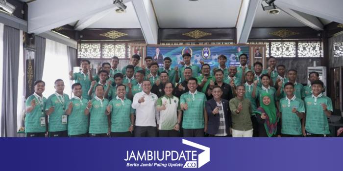 JAMBIUPDATE.CO, BATANGHARI - Ketua Asprov PSSI Jambi Mhd Fadhil Arief melepas Kontingen Sepak Bola Provinsi Jambi pada pekan olahraga wilayah (Porwil) Sumatera - Riau Tahun 2023. Acara yang berlangsung di ruang kaca rumah Dinas Bupati Batanghari tersebut juga dihadiri oleh Ketua Koni Provinsi Jambi Budi Setiawan, Sekretaris Asprov PSSI Jambi, Ketua Koni Batanghari, Manager sepak bola pada Porwil Sumatera - Riau Abu Bakar Sidik, serta para atlet yang ikut berlaga, Rabu (01/11).