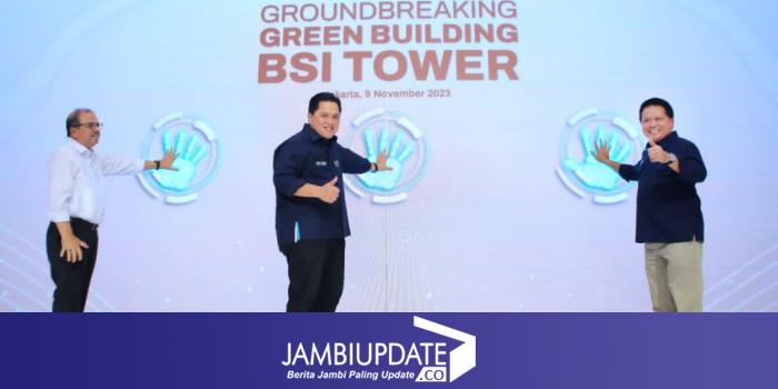 JAMBIUPDATE.CO, JAKARTA, 9 November 2023 - PT Bank Syariah Indonesia Tbk. (BSI) melakukan peletakan batu pertama (groundbreaking) pembangunan gedung kantor baru bernama BSI Tower yang dibangun berkonsep green building. BSI Tower diproyeksikan menjadi financial center dan sebagai kawasan yang ikonik di jantung kota Jakarta.