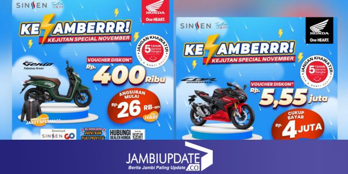 JAMBIUPDATE.CO, JAMBI - PT Sinar Sentosa Primatama (Sinsen) main dealer sepeda motor Honda di Provinsi Jambi memberikan program spesial dengan tajuk “Kesamberrr!” Kejutan Special November.