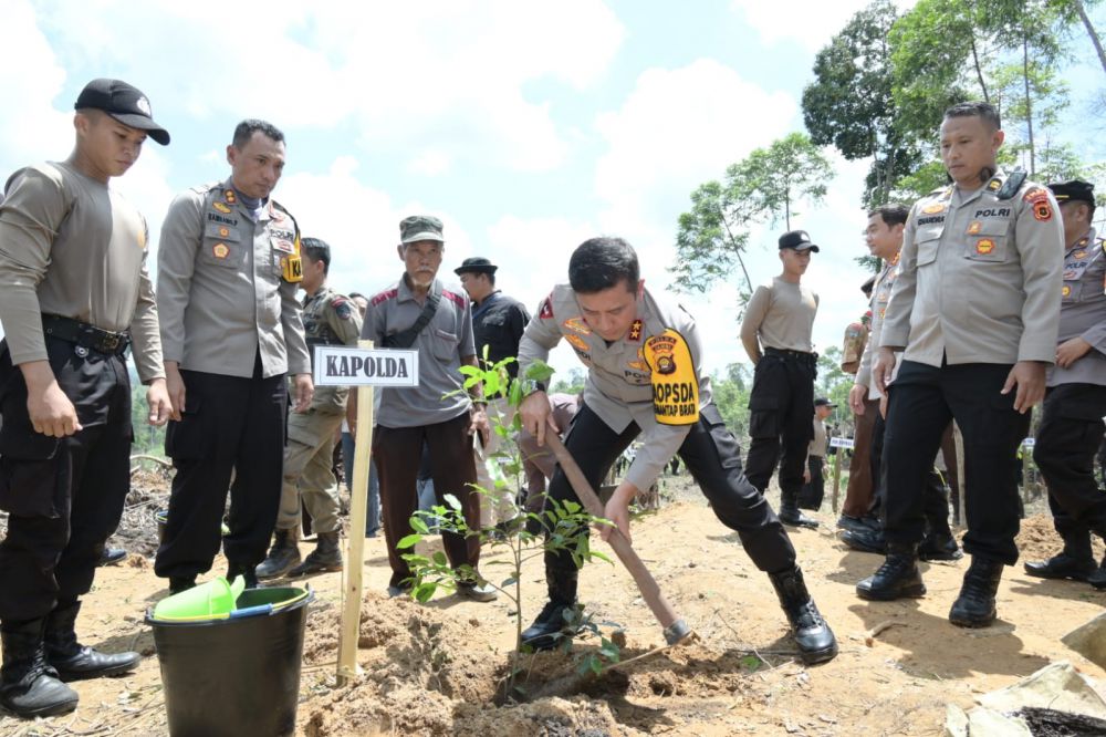 JAMBIUPDATE.CO, JAMBI- Kapolda Jambi Irjen Pol Rusdi Hartono dan rombongan lakukan kegiatan penanaman pohon dalam rangka kegiatan "Penanaman Sepuluh Juta Pohon Bersama Polri".