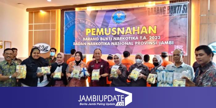 JAMBIUPDATE.CO, JAMBI- Badan Narkotika Nasional Provinsi ( BNNP) Jambi musnahkan barang bukti narkotika jenis sabu seberat 10.7 kilogram dan pil ekstasi hampir 4.860 butir senilai miliaran rupiah.