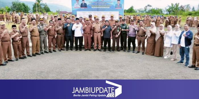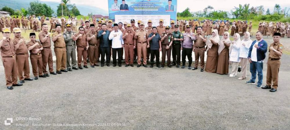 JAMBIUPDATE.CO, KERINCI- Ratusan pejabat dan ASN melakukan apel deklarasi damai dan menandatangani fakta integritas netralitas ASN menyongsong Pemilu 2024, Senin (5/12/2023).
