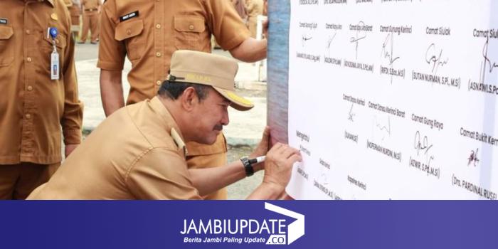JAMBIUPDATE.CO, KERINCI - Ratusan pejabat dan ASN melakukan apel deklarasi damai dan menandatangani fakta integritas netralitas ASN menyongsong Pemilu 2024.