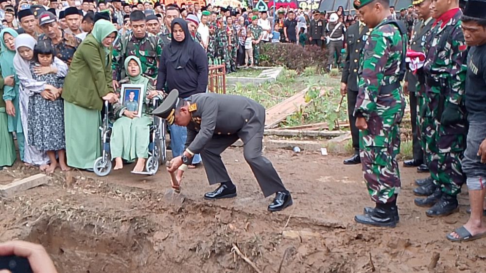 Upacara pemakaman secara militer itu dipimpin langsung oleh Dantem 032 Wirabaja Brigjen TNI Rayen Obersyl dengan diantarkan pihak keluarga serta kerabat almarhum.