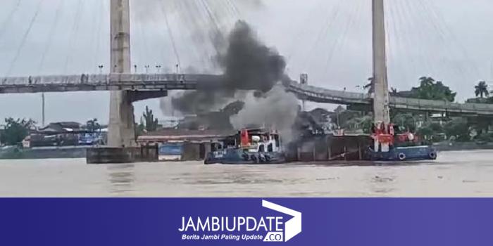 JAMBIUPDATE.CO, JAMBI - Tongkang bermuatan batubara yang ditarik kapal tug boat dari Hulu Sungai Batanghari menuju Hilir menabrak tiang Jembatan Gentala Arasy, Kota Jambi, pada Kamis (28/12) sekira 11.40 WIB .