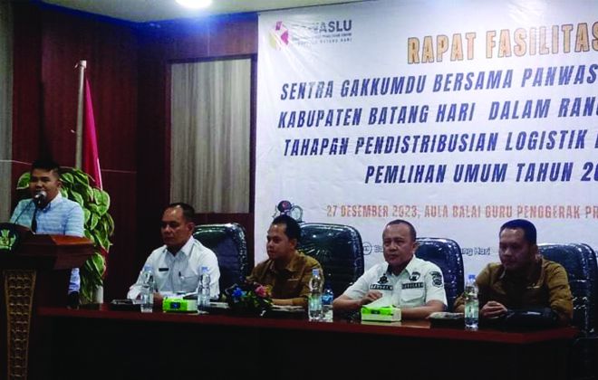 JAMBIUPDATE.CO, BATANGHARI- Badan Pengawas Pemilihan Umum (Bawaslu) Kabupaten Batanghari menggelar Rapat Fasilitasi Sentra Gakkumdu Bersama Panwaslu Kecamatan Se-Kabupaten BatangHari dalam Rangka Persiapan Tahapan Pendistribusian Logistik Pada Tahapan Pemilu 2024.