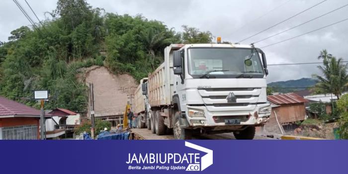 JAMBIUPDATE.CO, KERINCI- Kondisi jembatan putus di desa Tamiai Kecamatan Batang Merangin Kabupaten Kerinci menuju Bangko, Sabtu (6/1/2024) pukul 10.30 WIB sampai saat ini masih dalam pengerjaan jembatan darurat oleh PT Kerinci Merangin Hidro PLTA Kerinci.