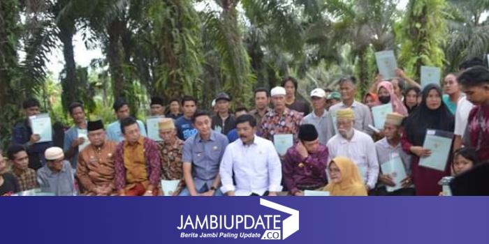 Dalam kesempatan ini, ada sebanyak 289 bidang sertifikat tanah yang diberikan Menteri ATR/BPN Hadi Tjahjanto, 183 bidang untuk warga Desa Mekar Jaya dan 106 bidang untuk warga Talang Belido, Kabupaten Muaro Jambi. (wan)