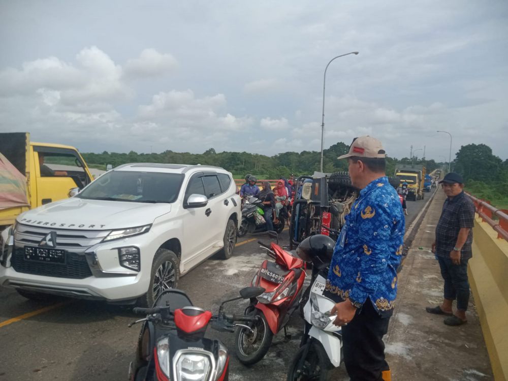 JAMBIUPDATE.CO, JAMBI- Ternyata Mobil Rescue Kementerian Sosial (Kemensos) Dinas Sosial Provinsi Jambi yang terbalik di Jembatan Aurduri II sekitar pukul 14.00 WIB siang tadi akan mengantarkan bantuan sembako untuk korban banjir yang akan diserahkan langsung oleh Gubernur Jambi Al Haris, Rabu (17/1).