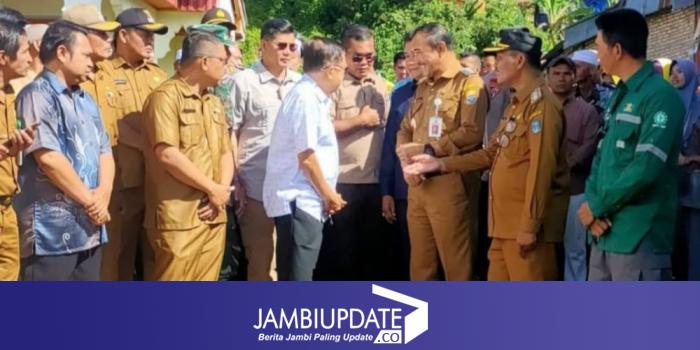 JAMBIUPDATE.CO, KERINCI - Pj Bupati Kerinci, Asraf, mendampingi Wakil Presiden RI 2004-2009 dan 2014-2019, Muhammad Jusuf Kalla hari ini berkunjung ke Desa Koto Petai, Kecamatan Danau Kerinci, Kabupaten Kerinci, Selasa (23/1) untuk mengunjungi warga korban terdampak banjir beberapa waktu lalu.