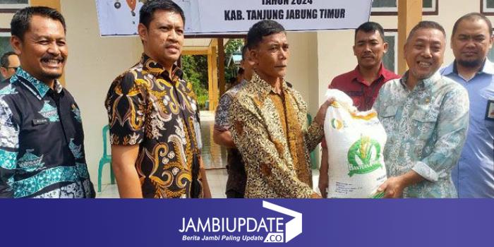 Sekda Tanjabtim, Sapril didampingi oleh Pimpinan Kancab Bulog Kuala Tungkal, Arif Akhmadi Hamdan, perwakilan PT. Pos (transporter), Kepala Dinas Ketahanan Pangan Kabupaten Tanjabtim, Fajar Alamsyah, Camat Muara Sabak Barat dan Lurah Talang Babat, langsung menyerahkan Bantuan Pangan secara simbolis kepada masyarakat.