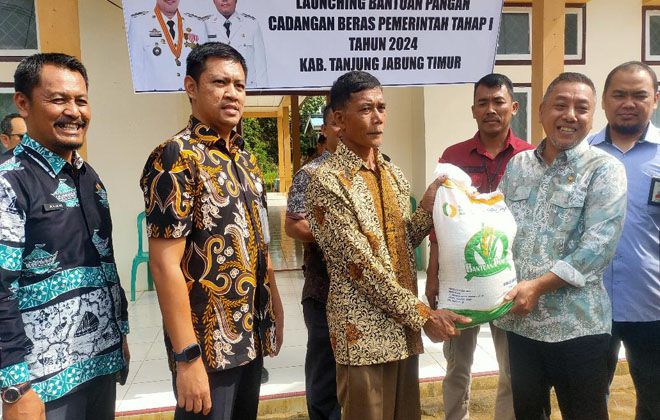 JAMBIUPDATE.CO, MUARASABAK- Pemerintah Kabupaten Tanjabtim launching penyaluran Cadangan Pangan Pemerintah (CPP) melalui program Bantuan Pangan di Kelurahan Talang Babat, Kecamatan Muara Sabak Barat, Kamis (25/1) kemarin.