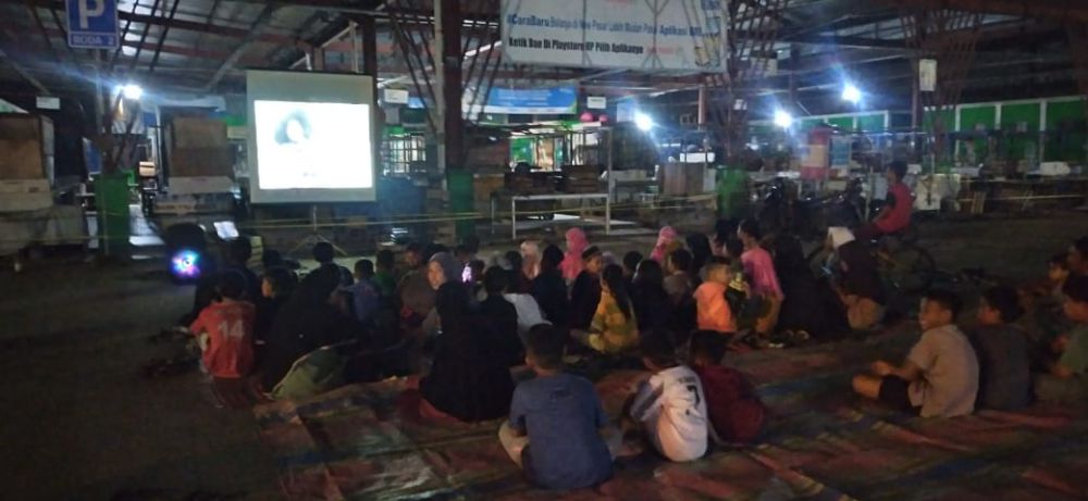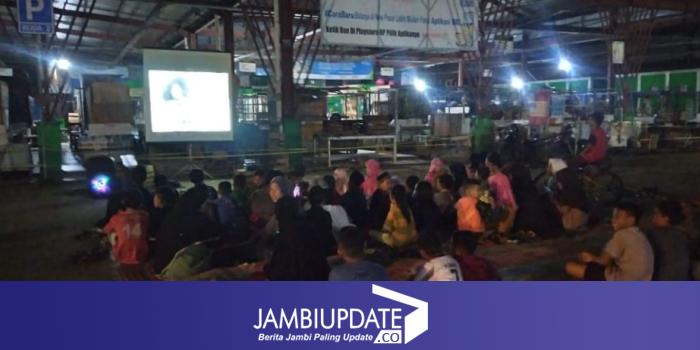 Nonton bareng (nobar) film dokumenter dampak buruk industri baru bara itu, digelar di pelataran parkir Pasar Rakyat Aurduri, Perumahan Aurduri, Kelurahan Aur Kenali, Kecamatan Telanaipura, Kota Jambi, Sabtu malam (27/1/2024).