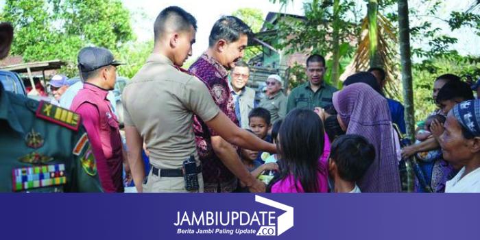 JAMBIUPDATE.CO, MUARO JAMBI- Penjabat Bupati Kabupaten Muaro Jambi Bachyuni Deliansyah SH. MH Bersama Baznas kabupaten Muaro Jambi berikan bantuan berupa sembako kepada masyarakat yang terdampak bencana banjir yang terjadi di Desa Tanjung, Kecamatan Kumpeh.