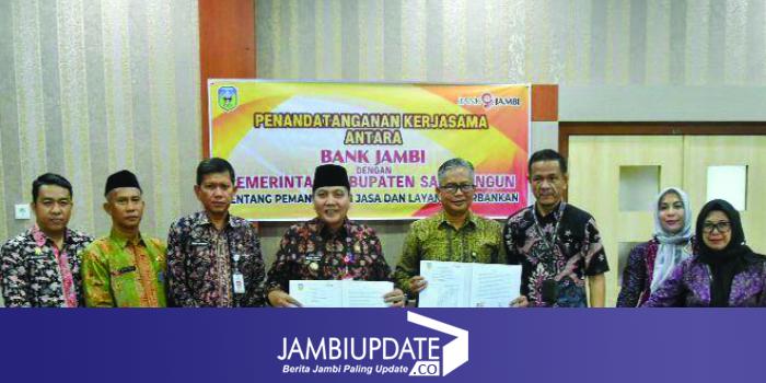 JAMBIUPDATE.CO, SAROLANGUN– Dalam rangka mempermudah jasa dan layanan perbankan bagi Pemerintah Daerah Kabupaten Sarolangun, Pemkab Sarolangun telah melakukan penandatanganan kesepakatan Memorandum of Understanding (MoU) dengan Bank Jambi. Kesepakatan kerjasama tersebut dalam pemanfaatan jasa dan layanan perbankan bagi Pemkab Sarolangun, salah satunya penggunaan Kartu Kredit Pemerintah Daerah (KKDP) di seluruh Organisasi Perangkat Daerah (OPD) dalam wilayah Pemerintah Kabupaten Sarolangun. Direktur Bank Jambi, Khairul Suhairi mengatakan, bahwa dengan penandatanganan kerjasama ini nantinya bank Jambi akan memberikan kartu kredit bagi seluruh OPD, dan kartu kredit tersebut bisa digunakan untuk pelaksanaan kegiatan belanja keuangan daerah. ”Kalau layanan perbankan memang dari awal kabupaten berdiri dan bank Jambi berdiri itu sudah ada, namun kita melakukan penandatangan PKS berupa legalitasnya dibuat semacam Mou, terkait semua pelayanan perbankan. Kegiatan ini juga tandatangan kartu kredit Pemerintah Daerah (KKPD),” katanya. ”Setelah dilaksanakan penandatangan ya PKS nya maka setiap SKPD itu nanti kita berikan kartu kredit, Dan itu bisa digunakan bila ada keperluan dinas, pembelian barang dan sebagainya,” tambahnya. Dikatakan Khairul Suhairi, bahwa pelaksanaan kerjasama terkait KKDP ini juga sudah dilakukan dengan beberapa kabupaten/Kota Lainnya di Provinsi Jambi, dalam rangka mempermudah serta mempercepat proses pengadaan barang dan jasa.