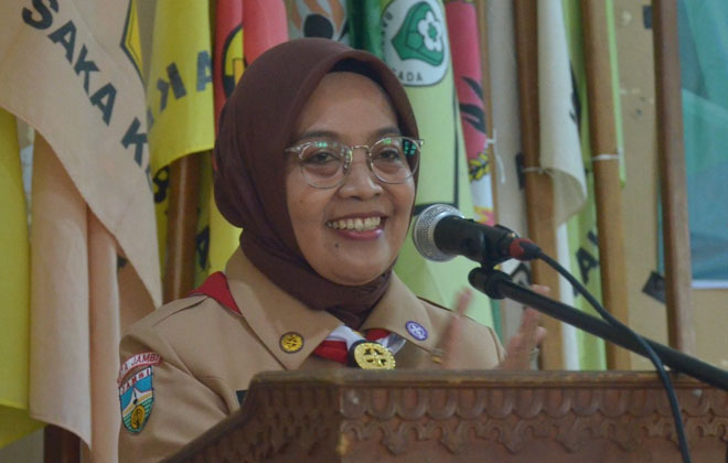 JAMBIUPDATE.CO, JAMBI- Penjabat Wali Kota Jambi Sri Purwaningsih menghadiri dan membuka Rakor Kepramukaan tingkat Kota Jambi tahun 2024, Senin pagi (26/2/2024).