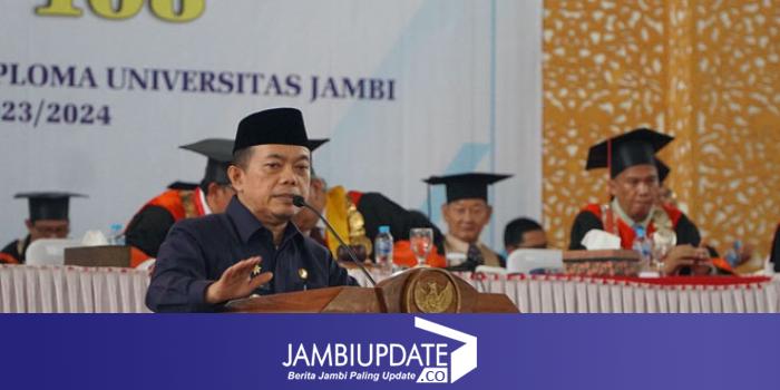 JAMBIUPDATE.CO, JAMBI- Gubernur Jambi Dr. H. Al Haris, S.Sos., MH mengutarakan, prosesi wisuda ini merupakan salah satu fase bahagia didalam kehidupan. Hal tersebut diutarakannya saat menghadiri Rapat Terbuka Senat Universitas Jambi Wisuda Ke-108 Program Doktor, Magister, Profesi, Sarjana, dan Diploma Universitas Jambi Semester Genap Tahun Akademik 2023/2024, bertempat di Balairung Universitas Jambi, Mendalo Darat Kecamatan Jambi Luar Kota, Kabupaten Muaro Jambi, Selasa (27/02/2024) Pagi.
