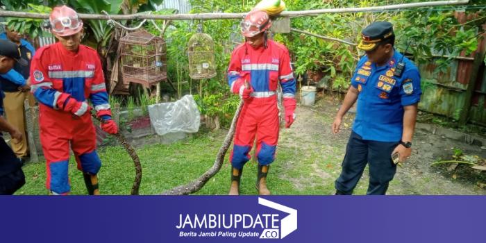 iklan Tim respons cepat dari Damkartan Kota Jambi saat mengamankan ular yang masuk ke pemukiman warga.