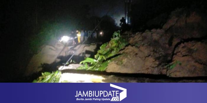 JAMBIUPDATE.CO, KERINCI- Ruas jalan Kerinci-Bangko lumpuh total Minggu (3/3/2024) malam tadi. Akibat longsor yang terjadi menutup badan jalan, tepatnya di Desa Muara Emat, Kecamatan Batang Merangin, Kerinci.