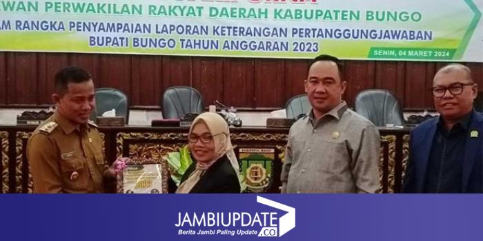 JAMBIUPDATE.CO, MUARA BUNGO– Dewan Perwakilan Rakyat Daerah (DPRD) Kabupaten Bungo menggelar rapat paripurna dalam rangka penyampaian laporan keterangan pertanggungjawaban Bupati Bungo tahun anggaran 2023, Senin (04/03/2024).