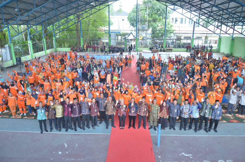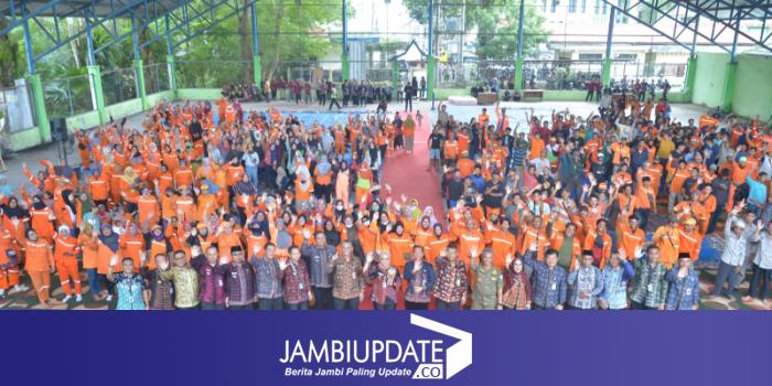 JAMBIUPDATE.CO, JAMBI– Pj Wali Kota Jambi, Sri Purwaningsih mengumpulkan seluruh pasukan orange atau petugas kebersihan, serta para pengawas dan semua yang terkait dengan penanganan sampah di kota Jambi, di lapangan tenis Dinas Pendidikan Kota Jambi, Kamis (7/3/2024).