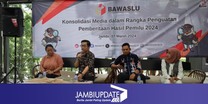 JAMBIUPDATE.CO, JAMBI- Guna memperkuat hubungan relasi dengan para insan pers di Provinsi Jambi, Bawaslu Republik Indonesia menggelar kegiatan konsolidasi media dalam rangka penguatan pemberitaan hasil Pemilu 2024, yang diikuti puluhan insan pers baik itu media cetak, elektonik dan online.
