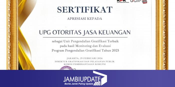 JAMBIUPDATE.CO, JAMBI - Otoritas Jasa Keuangan (OJK) kembali meraih dua penghargaan dari Komisi Pemberantasan Korupsi (KPK) sebagai peringkat I Program Pengendalian Gratifikasi Terbaik Nasional dan Program Pengendalian Gratifikasi Terbaik pada kategori Kementerian/Lembaga untuk tahun 2023.
