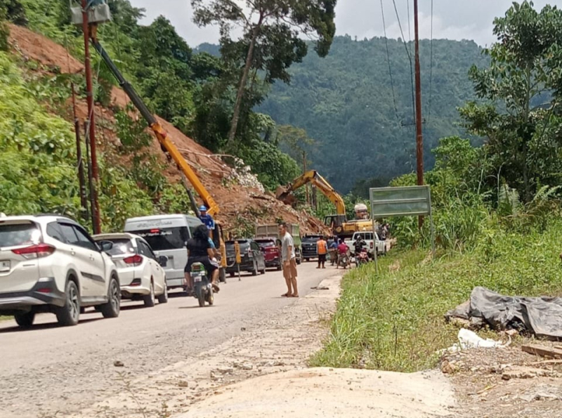 "Longsor diakibatkan hujan deras pada ruas batas Kerinci/Merangin - Sanggaran Agung," kata Diaz.