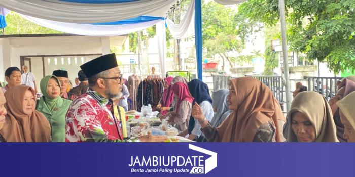 iklan Sekda Provinsi Jambi Sudirman meninjau stand UMKM di Bazar TP PKK.